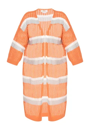 usha FESTIVAL Gebreid vest ‘Fashion Look’ grijs / oranje / wit