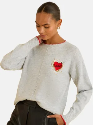 love & roses Trui grijs / rood / zwart