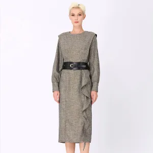 Kleermakerskleding met brede schouder en verticale ruches