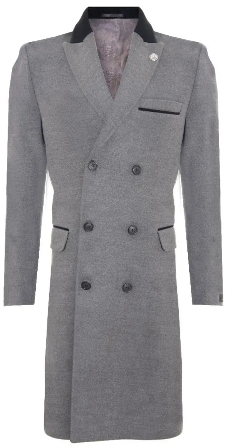 Heren 3/4 lange dubbele rij grijze Crombie overjas wollen jas Peaky Blinders