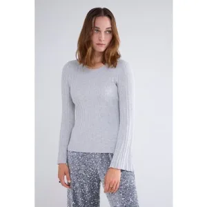 Summum Woman Trompet Sleeve Sweater Cotton Silk Blend Knit Greys