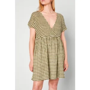 American Vintage Round Collar Shortsleeves Dress Vichy Kaki