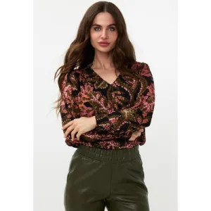 EsQualo Blouse V-neck Global Flower Print