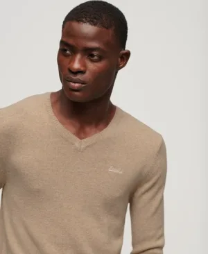 Superdry Mannen Gebreide Essential Trui met V-hals en Borduursel Grijs