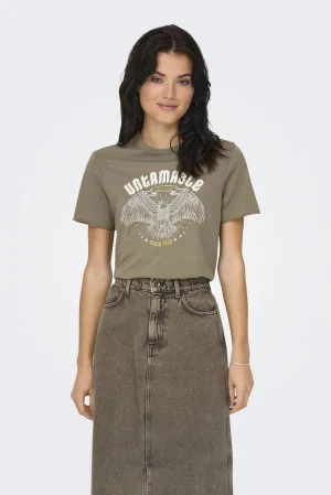 ONLY T-shirt ONLLUCY met printopdruk lichtbruin
