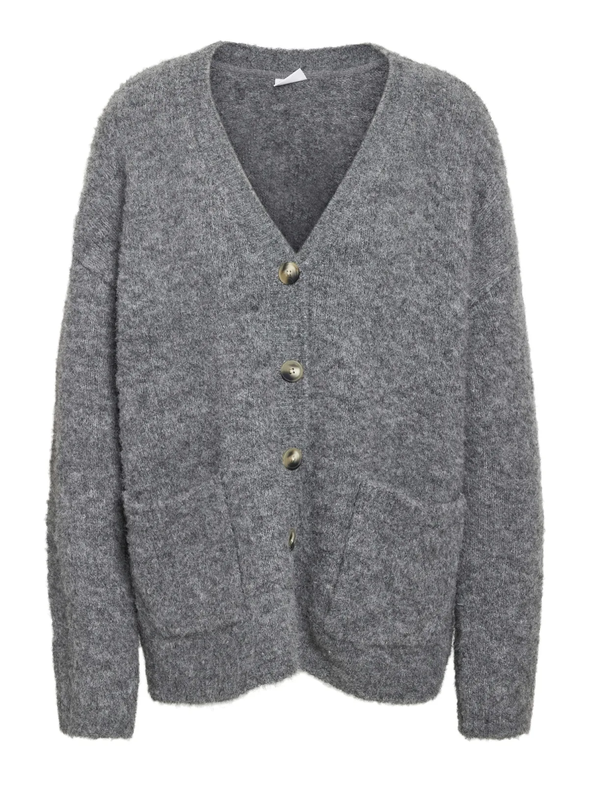 Noisy may Gebreid vest ‘NMDolly’ grijs gemêleerd