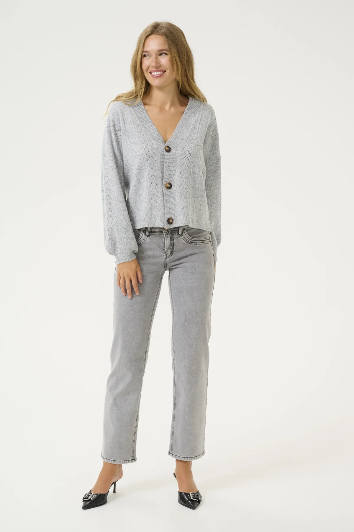 Base Level cardigan grijs melange fijn gebreid