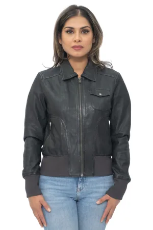 Dames leren MA-1 Varsity jack-Ann Arbor