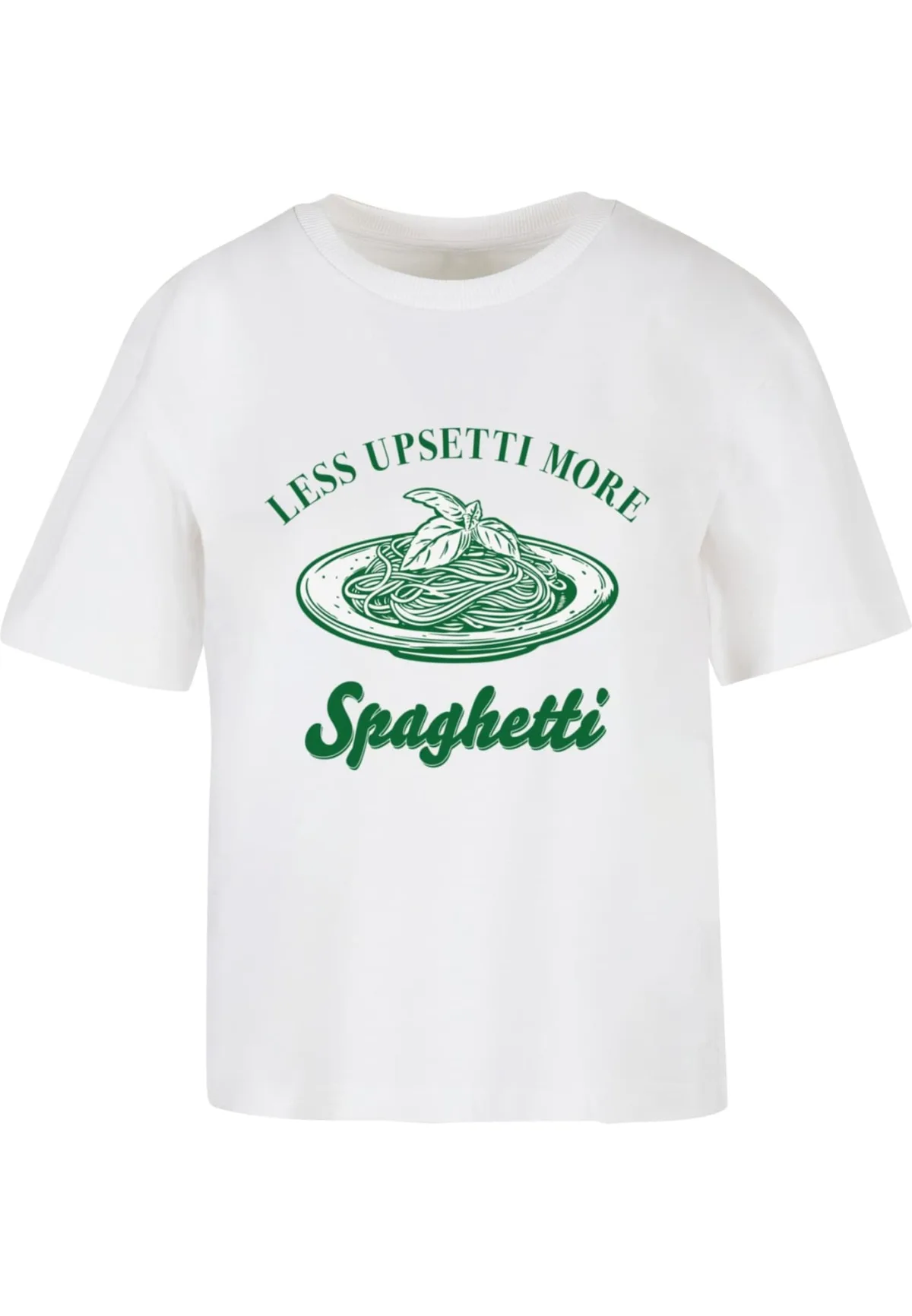 Miss Tee Shirt ‘Less Upsetti’ groen / wit