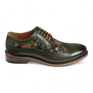Justin Reess Heren Groene Leren Bloemenprint Brogue Dress Schoenen – Ross