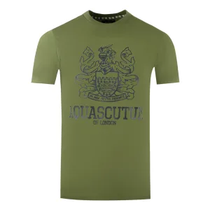 Aquascutum Large Bold London Aldis Brand Logo Army Green T-Shirt