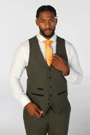 Heren olijfgroene wolmix tweed formele vesten
