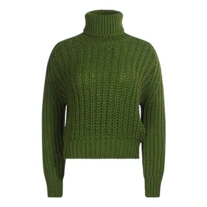EsQualo Sweater Batwing Buttoned Cuff Army Green