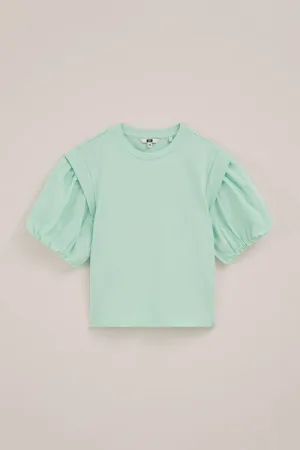 WE Fashion – Meisjes T-shirt met ballonmouwen – Regular fit – Mintgroen – Katoen –