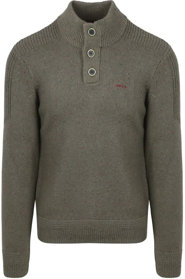 Jacob Kabelgebreide Trui Met Halve Rits Green