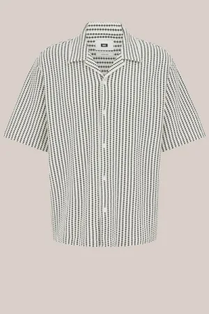 WE Fashion – Heren gebreid overhemd met structuur – Boxy Fit – Donkergroen – Katoen –
