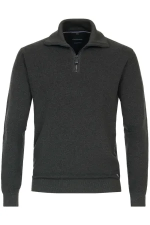 Casa Moda Casual Regular Fit Half-Zip Sweater groen, Effen