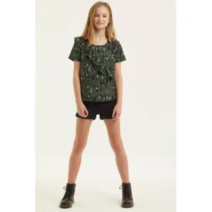 Zigga top met all over print en volant donkergroen/zwart/geel