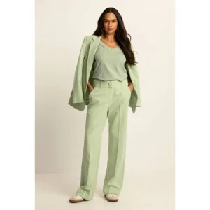 WE Fashion Dames wide leg pantalon met linnenlook