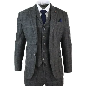 Heren 3-delig houtskoolgrijs geruit tweed visgraat vintage klassiek pak