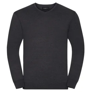 Russell Collectie Heren V-Hals Gebreide Trui (Houtskool mergel)