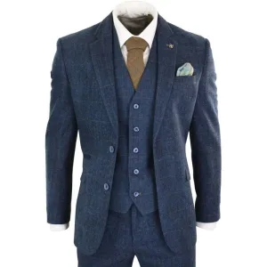 Heren 3-delig marineblauw tweed visgraat vintage klassiek pak