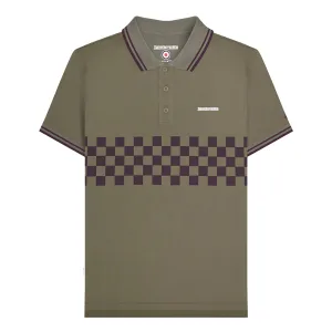 Lambretta Heren SS25 Tweekleurig Gestipt Poloshirt (Kaki Groen/Java Bruin)