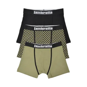 Lambretta Heren Boxershorts Assorti (Set van 3) (Khaki Groen/Zwart)