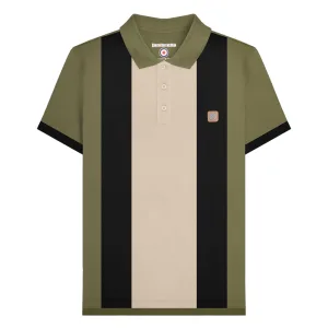 Lambretta Heren Vintage poloshirt met panelen (Kaki Groen)