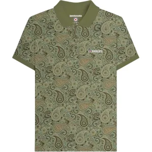 Lambretta Heren SS25 Paisley gemerkt poloshirt (Kaki Groen)