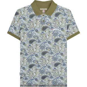 Lambretta Heren SS25 Paisley Gebrand Big & Tall Poloshirt (Kaki Groen/Navy)