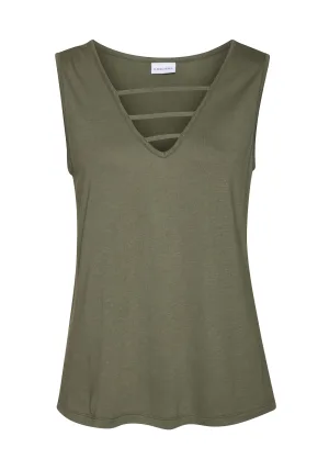 Khaki visnet hartpatroon gehaakte top