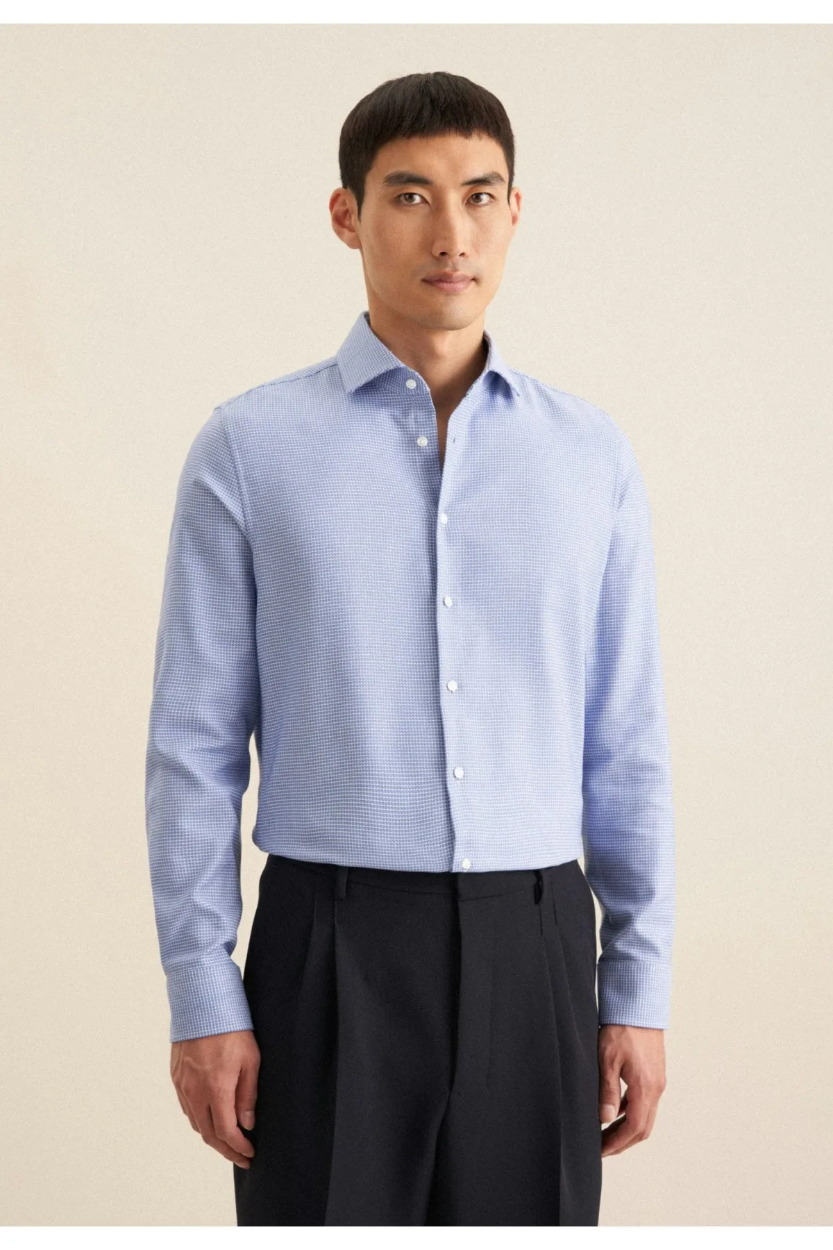 Seidensticker Overhemd Klassiek Blauw, Gestructureerd