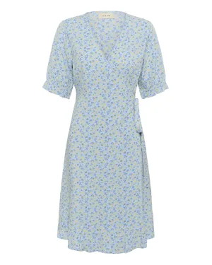 Cream Jurk ‘Tiah’ lichtblauw / geel