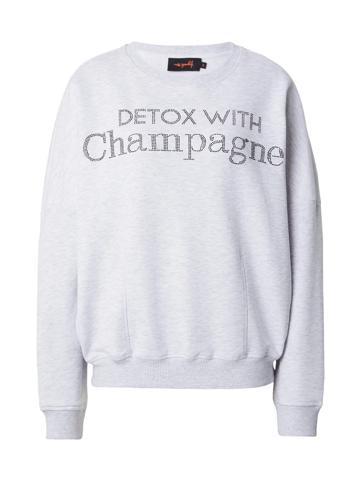 miss goodlife Sweatshirt ‘Detox With Champange’ lichtgrijs / zwart