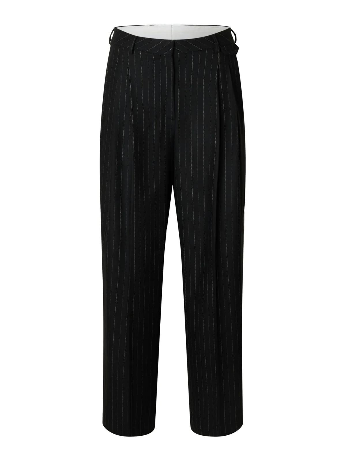 SELECTED Bandplooibroek ‘SLFMalia Manteco’ lichtgrijs / zwart