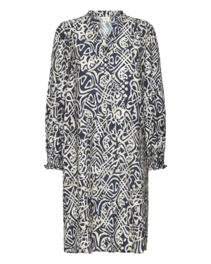 KAFFE CURVE Jurk ‘Charlotta’ marine / wit