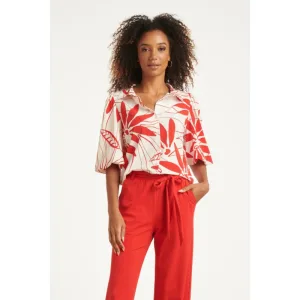 Smashed Lemon Blouse met tie-dye look en ruches in bruin en roze |