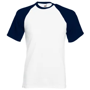 Fruit Of The Loom Heren baseballshirt met korte mouwen (Wit/Donker Marine)
