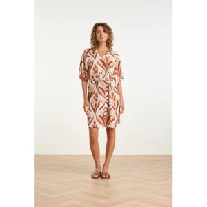 Mouwloze midi-jurk – abstracte rode print, transparant nylon mesh, volledig gevoerd met katoen