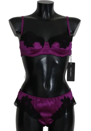 Dolce & Gabbana Paarse Zijde Bloemen Kant Rekbare Ondergoed
