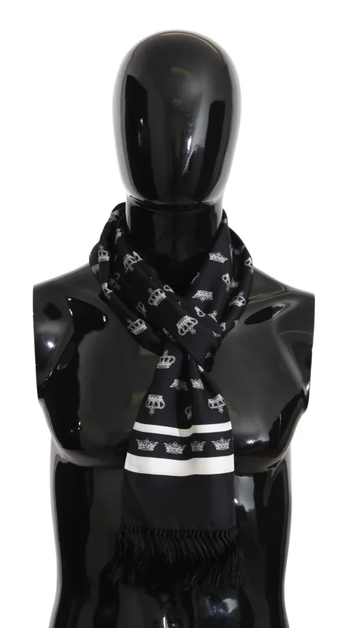 Dolce & Gabbana Blauwe Zijde Kroon Fringe Mannen Sjaal 180cm x 30cm