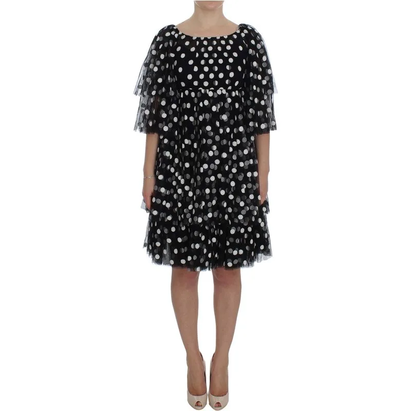 Dolce & Gabbana Zwart-wit gestippelde jurk met ruches voor dames