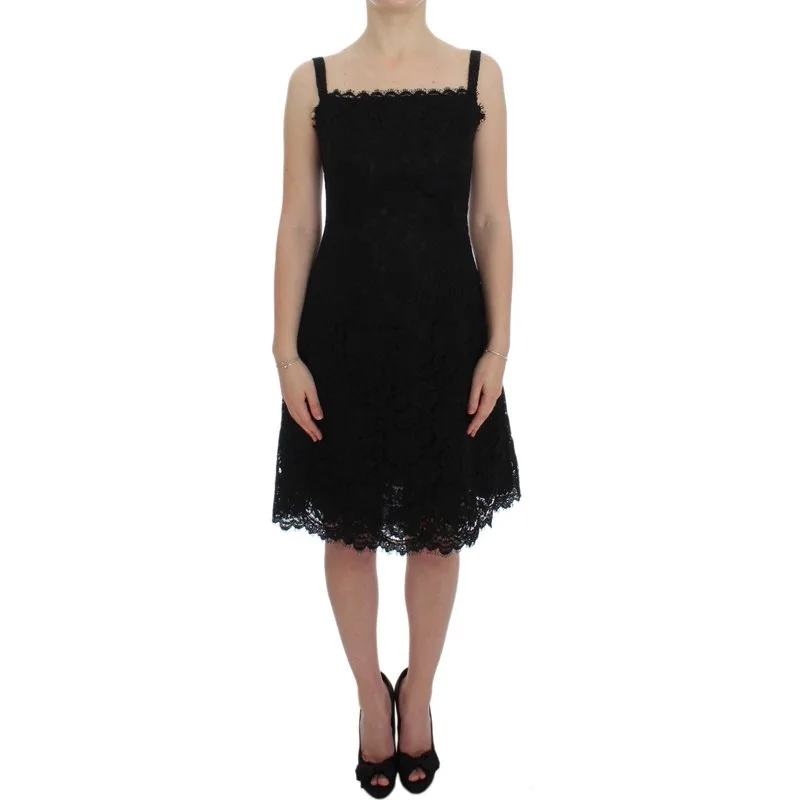Dolce & Gabbana Vrouwen Zwart Bloemen Kanten Shift Knie Lengte Jurk