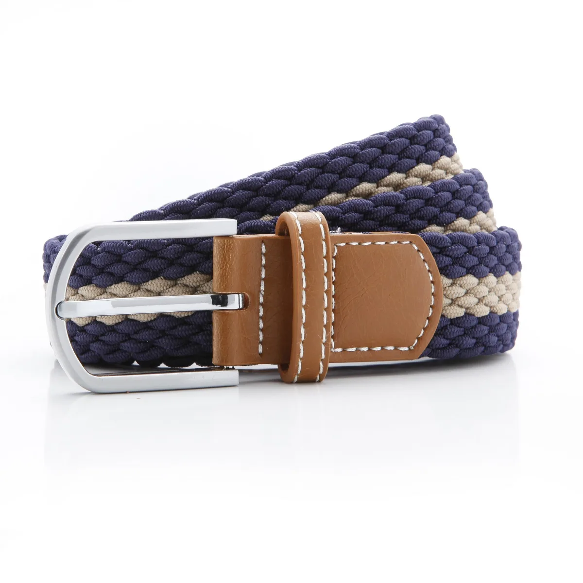 Asquith & Fox Heren Twee Kleurige Gestreepte Braid Stretch Riem (Marineblauw/Khaki)