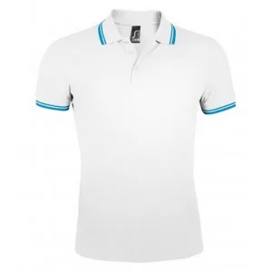 SOLS Heren Pasadena getipt korte mouw Pique Polo Shirt (Wit/Aqua Blauw)