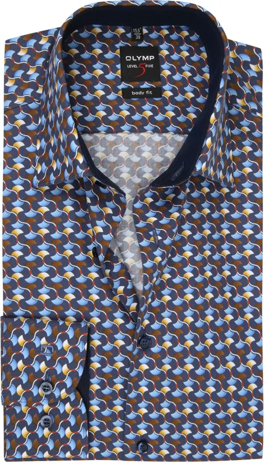 OLYMP Lvl 5 Overhemd Dessin Blauw
