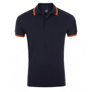 SOLS Heren Pasadena getipt korte mouw Pique Polo Shirt (Franse marine/Neon Orange)