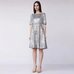 Gebogen en wijd uitlopende cocktailjurk in Jacquard