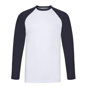 Fruit of the Loom Heren Contrast Honkbal T-shirt met lange mouwen (Witte/diepe marine)